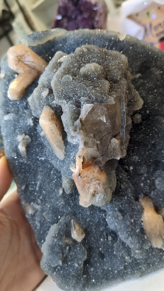 XL Blue chalcedony with chocolate calcite ✨