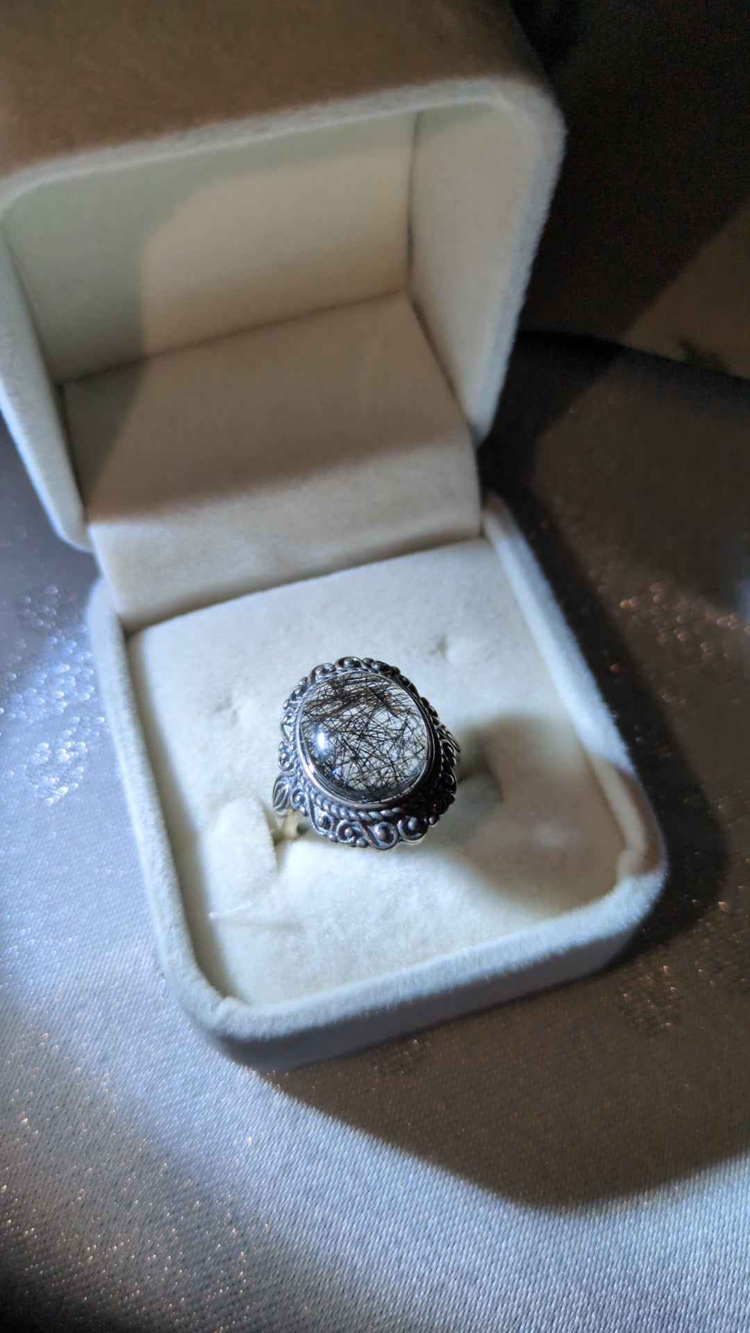 High quality black tourmaline in quartz ring ✨