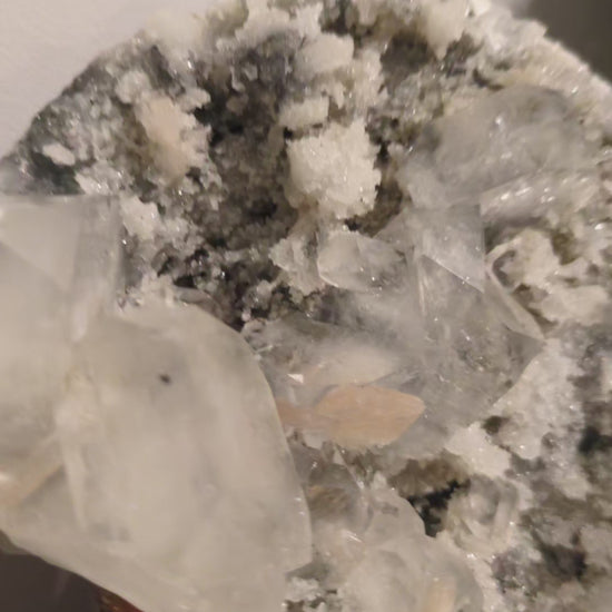 "iced Frost" Apophyllite with peach Stilbite on a frosty white chalecdony ✨