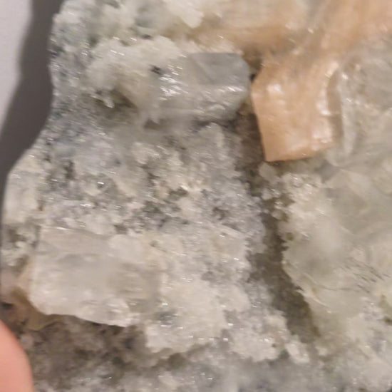 "iced Frost" Apophyllite with peach Stilbite on a frosty white chalecdony ✨