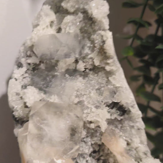 "iced Frost" Apophyllite with peach Stilbite on a frosty white chalecdony ✨